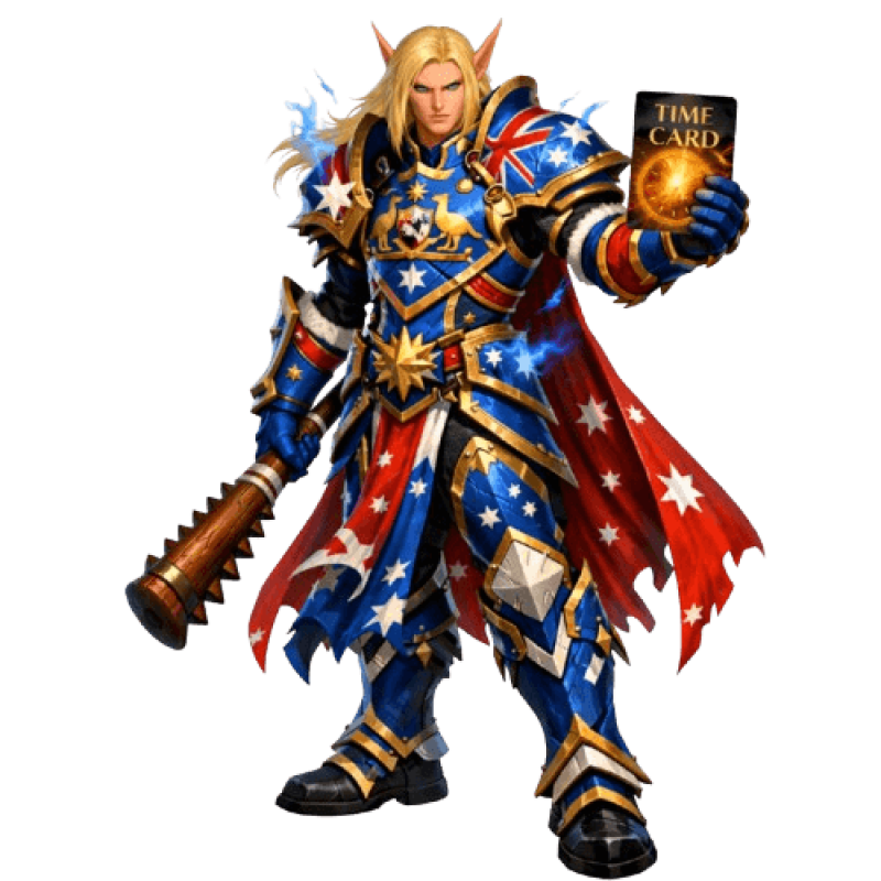 En World of Warcraft, los jugadores de Australia pertenecen a la región Américas / US. La Tarjeta de Tiempo correcta para cuentas australianas es la Tarjeta US/Américas, que activa simultáneamente todos los servidores de esta región sin restricciones adicionales.